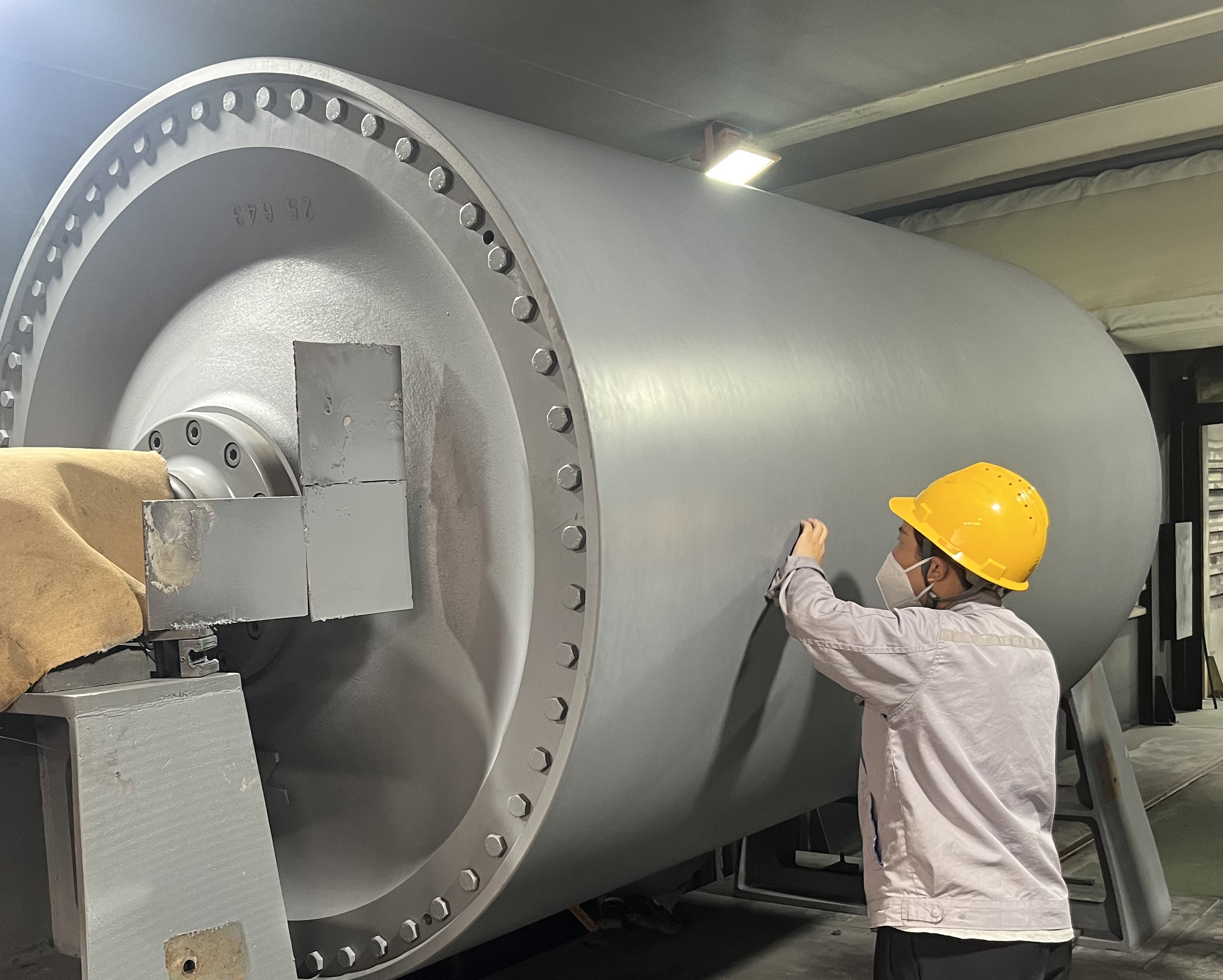烘缸是用鑄鐵製成的兩端有蓋的空心圓筒,由缸體及其兩端的缸蓋組成,外徑多為1000~3000mm,在運轉過程中,內通蒸汽將輸送的紙張烘幹燙光。在紙漿生產過程中,紙漿幹燥機的性能直接影響到產品的質量和生產效率。然而,隨著時間的推移,幹燥機的表麵難免會出現損傷,尤其是未修複的幹燥機表麵,常常會出現明顯的劃痕和凸起,塗層也會受到損壞。