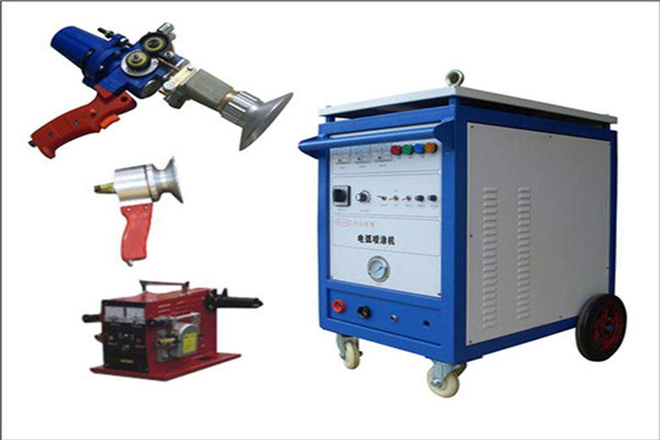 電弧噴塗設備主要由電弧噴塗電源、電弧噴塗槍、送絲機構及控製櫃等部分構成。噴塗電源為整個噴塗過程提供能量,其工作電壓和電流是影響塗層質量的重要參數。噴塗電源應能夠提供足夠的能量並具備良好的外特性及動特性。電弧噴槍要完成送進絲材,使送出絲材端很可靠相交以維持電弧穩定燃燒、霧化與噴射熔化金屬這是三個基本功能,是噴塗的直接實現者。電源及噴槍是電弧噴塗設備中關鍵的部件。
